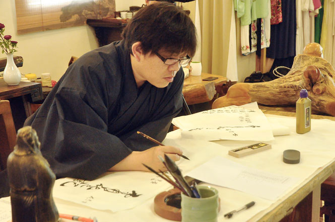 西際重譽寫得一手漂亮的毛筆字,對于香會記中的和歌也信手拈來,這一切都表明他在傳統(tǒng)文化的造詣匪淺。問他是否經(jīng)歷過嚴苛的學習、訓練,西際重譽表示對于傳統(tǒng)文化方面的學習毫無壓力?!皬男?,琴棋書畫、詩禮茶花這些雅道就圍繞在我身邊,就是我日常生活中的一部分,因此接觸它們也是非常自然的。對于生活中朝夕面對的事物,要了解、甚至是精通它們是非常順理成章的,無需經(jīng)過所謂的刻苦修煉?!?/span>