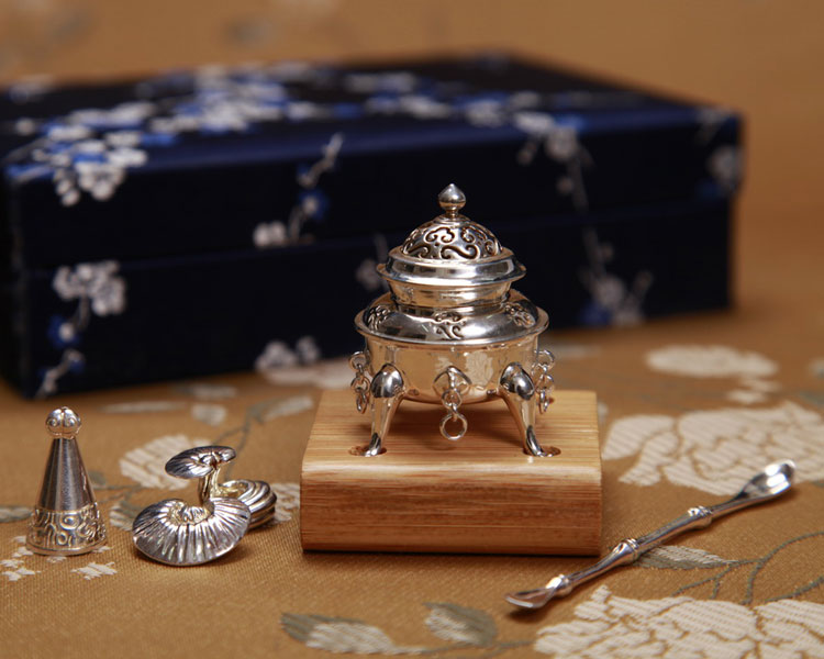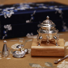 四足神獸爐,追思來自大唐盛世的遺風(fēng)。鐵骨,乃魏征直諫的硬骨;丹心,乃狄仁杰赤誠的忠心。大唐將近三百年間,國力強(qiáng)盛,歷經(jīng)二次盛世,前有貞觀之治,后有開元盛世,帶給我們豪邁之氣魄和廣闊之胸襟。香爐以四神獸足為腳,寓意威儀勇猛;以丹爐為身,寓意千錘百煉;以將軍帽為頭,寓意馳騁沙場。以文火煉心,以武火煉骨,一陰一陽,鑄成丹心碧血之氣魄、鐵骨錚錚之人格。