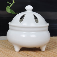 中國古代的審美思想,主要崇尚小巧精致,以晶瑩玲瓏的小乳為美,這種審美意象映射到古代香爐創(chuàng)作中就成了“三足乳丁爐”的文化來源。此電香爐由傳統(tǒng)的“三足乳丁爐”發(fā)展而來,因?yàn)槭褂昧诵碌碾姛嵫惴绞?,所以加配了爐蓋,使之更加美觀。香爐采用仿古單色釉工藝,簡潔含蓄,靜若處子,宛如一個嬌羞的小家碧玉在等待著欣賞她的如意郎君。